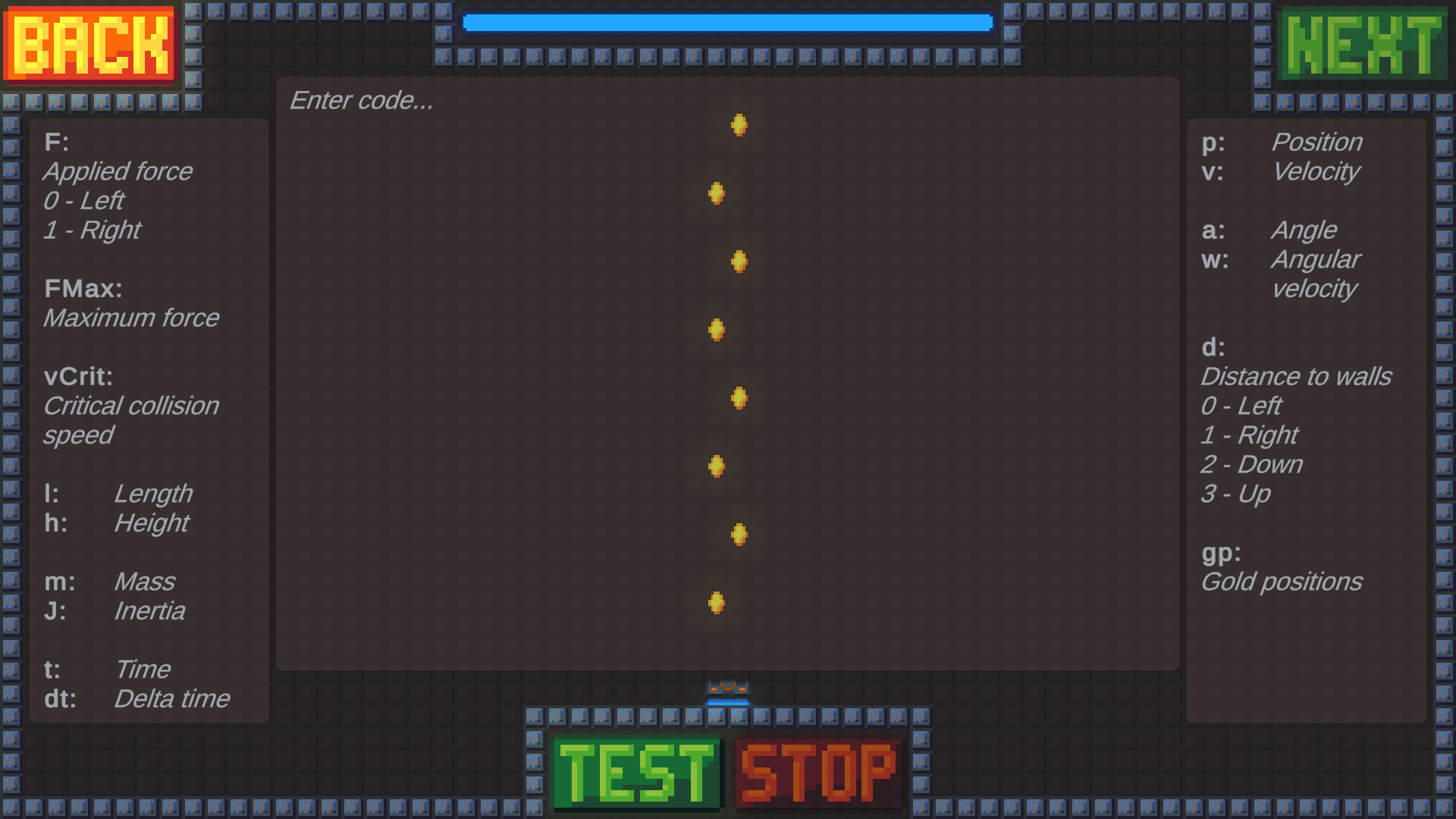 Test your control engineering and programming skills in Dynamic Drones. Write a controller to steer a drone through obstacle-filled levels. Collect gold, survive wind gusts, noisy sensors, and improve your time run after run. Refine your controller in a live in-game editor, while learning concepts like sensor fusion, disturbance handling, and trajectory planning as you fly through challenging levels!